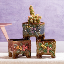 Nuevo estilo coreano 20A14 maceta suculenta de cerámica moderna de lujo Japandi Deco maceta cuadrada lindo Animal Vintage para uso en el suelo