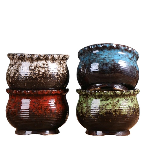 Tarro de cerámica de pila antigua de gran diámetro, maceta de flores suculentas transpirable Retro, cerámica gruesa creativa para macetas